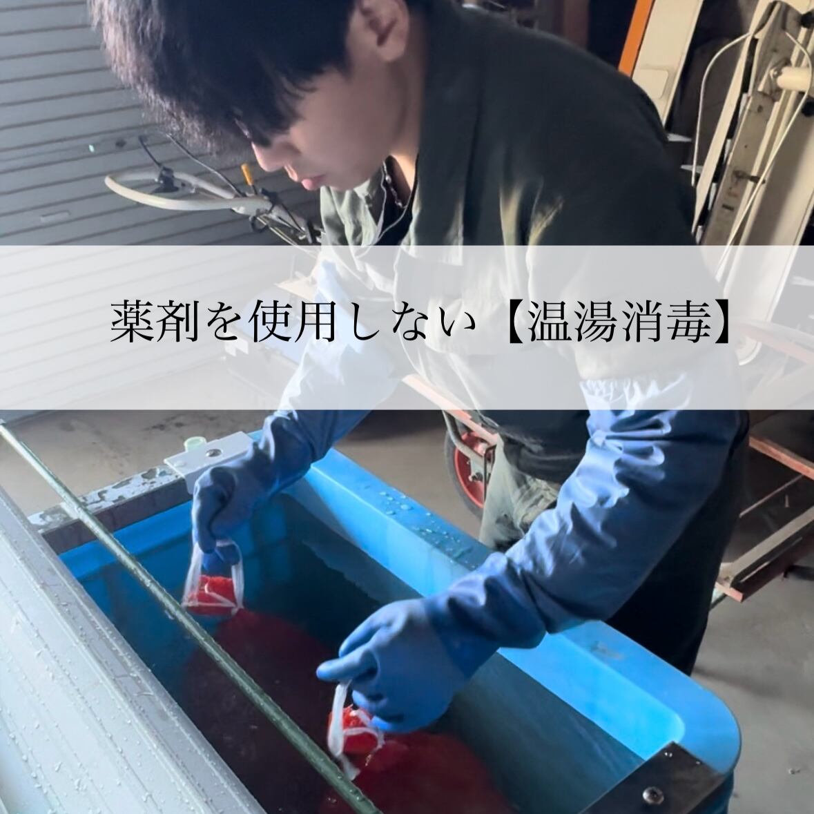 種子消毒時には薬剤を使用せず、温湯消毒法を用いています。