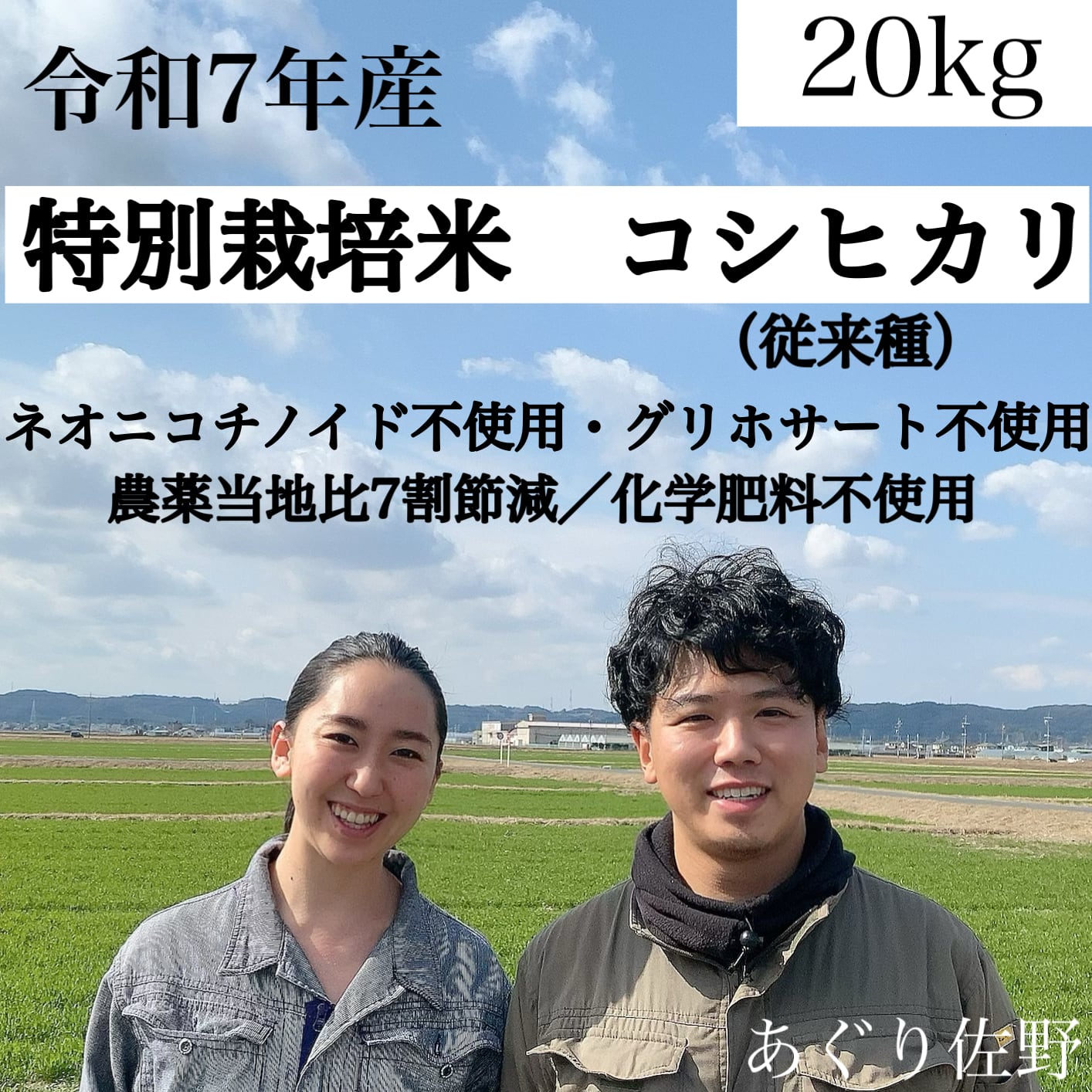 令和7年産新米 特別栽培米 20kg 農薬7割節減(ネオニコチノイド不使用・グリホサート不使用)・化学肥料不使用 従来種コシヒカリ