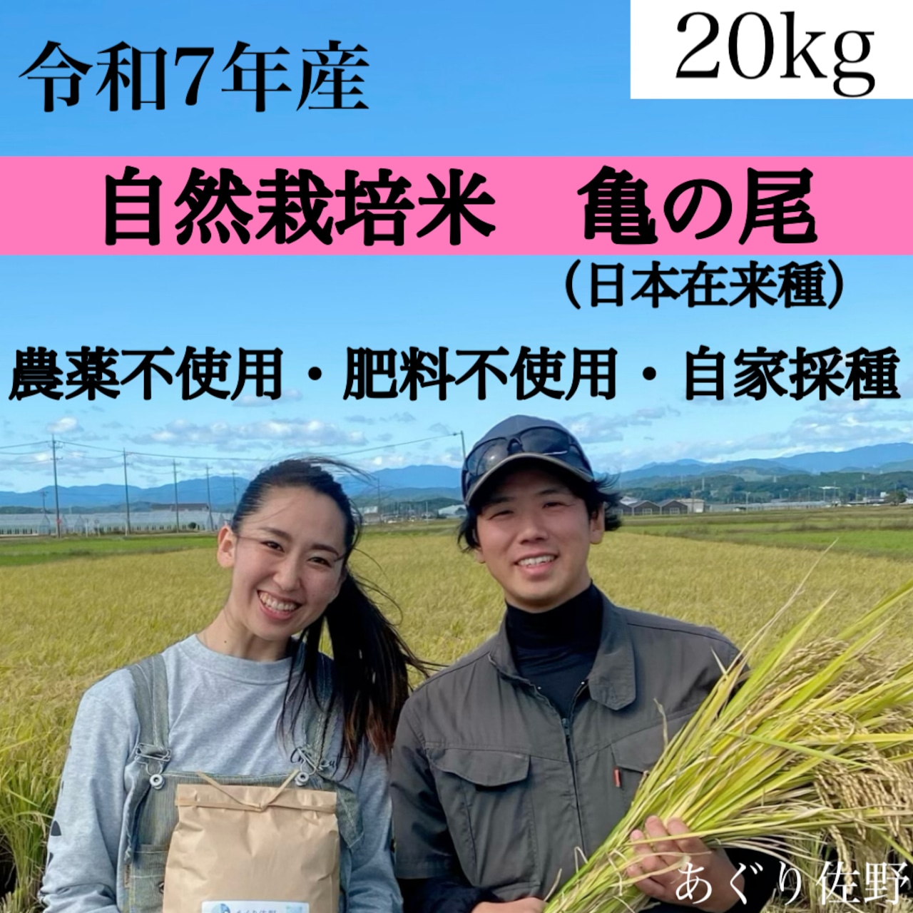 令和7年産新米 自然栽培米 自家採種 亀の尾 20kg 農薬不使用・肥料不使用