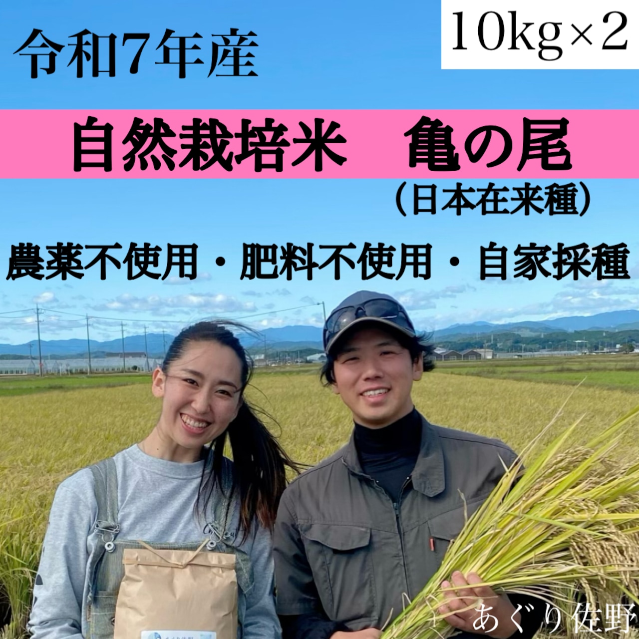 令和7年産新米 自然栽培米 自家採種 亀の尾 10kg×2 農薬不使用・肥料不使用