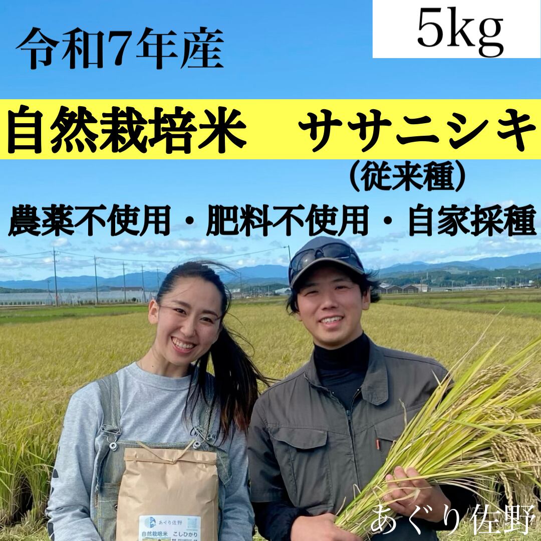令和7年産新米 自然栽培米 自家採種 ササニシキ 5kg 農薬不使用・肥料不使用